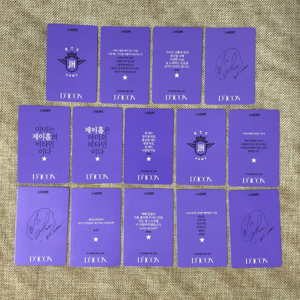 BTS J-HOPE [ DICON 101 CUSTOM BOOK ] Official Photocard Set of 14 / New / Gift