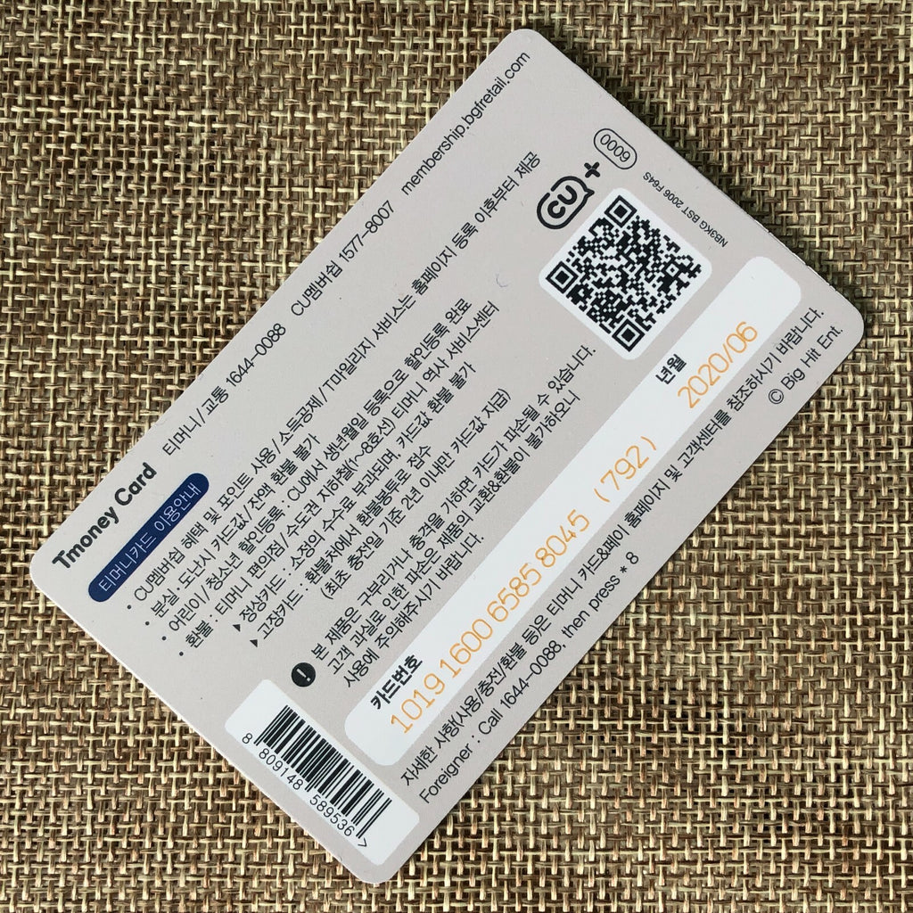 BTS SUGA [ 2020 CU T-Money Official Lenticular transparent Photocard ] New /+GFT