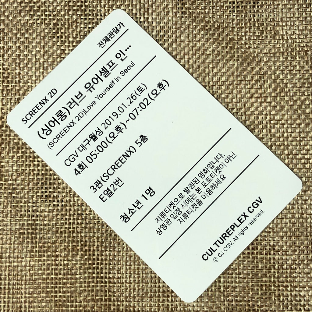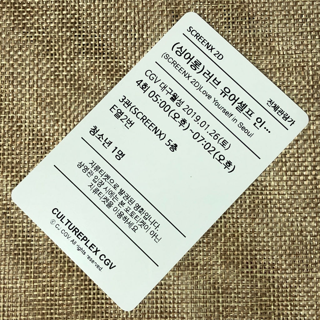 BTS SUGA #5 [Love Yourself in Seoul Movie] Official Ticket Photocard Photo /+G