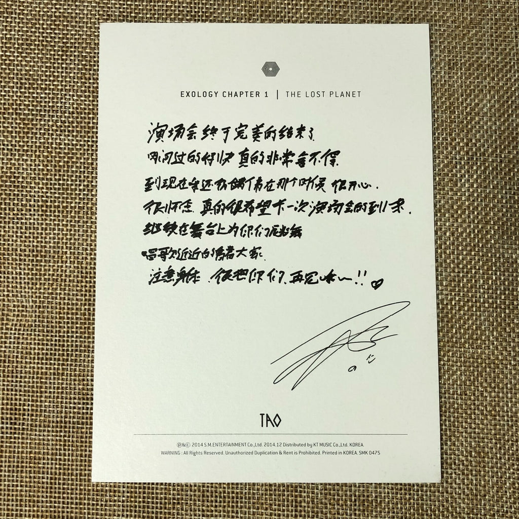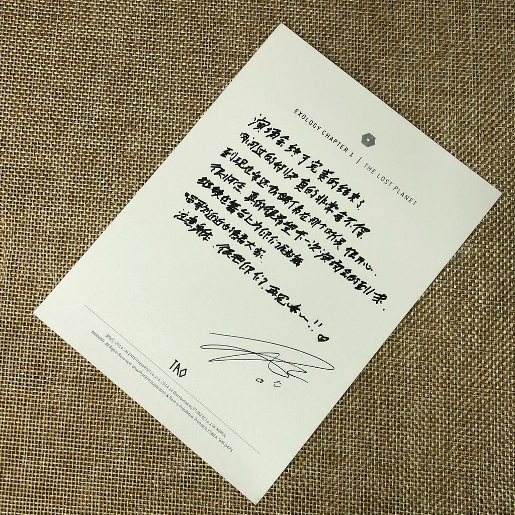 EXO TAO [ Exology Chapter 1 The Lost Planet Official Postcard ] NEW / +Gift