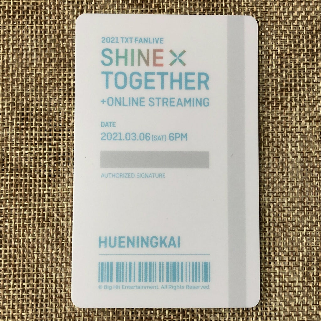 TXT HUENINGKAI [ 2021 Shine Together Fanlive Official Card Ticket ] New / +GFT